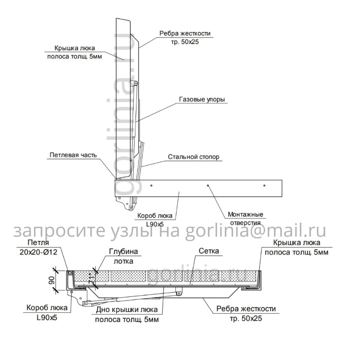 Корпус сварен из углового профиля горячего проката с толщиной стенки 5-6 мм; корыто - из листового проката 5-8 мм, с обвязкой поддона профильной трубой 50х25. Сварка аргонно-дуговая. Характер шва: сплошной с присадками меди.