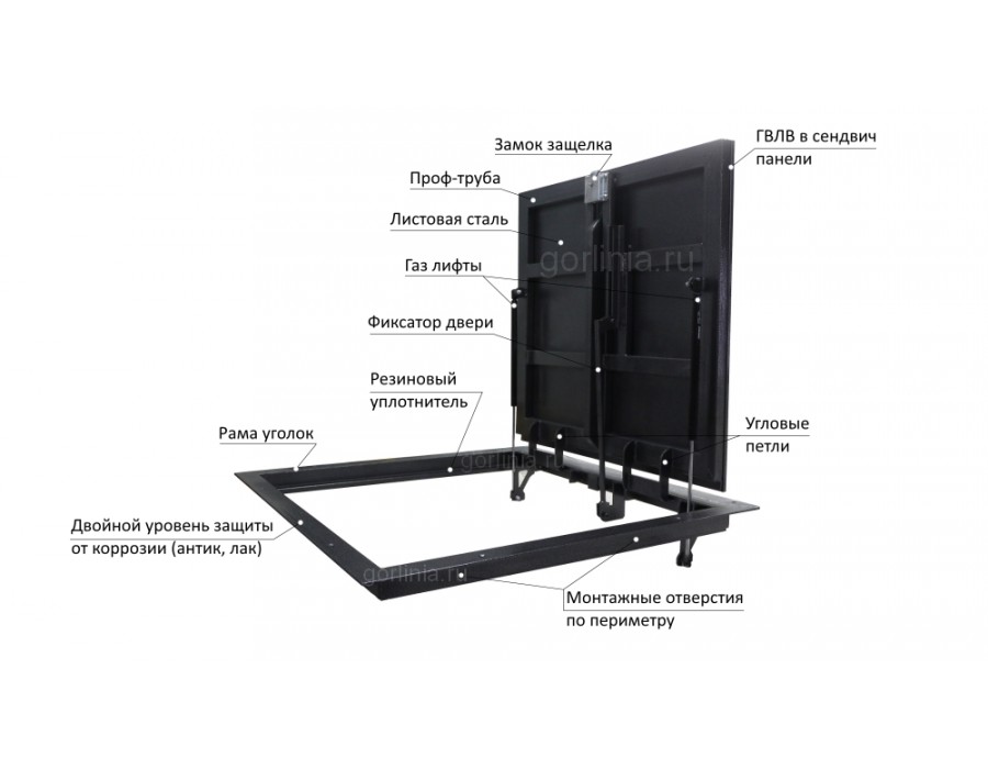 - для подъема используется съемная вставная ручка, в остальное время поверхность остается полностью замаскированной.